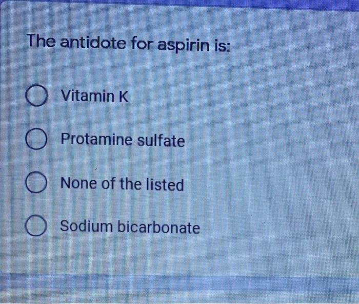 Solved The antidote for aspirin is Vitamin K O Protamine